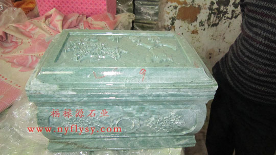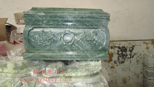 此款产品材质是青石类的材质,其表面采用雕刻工艺,为花型造型。