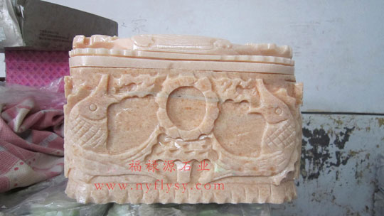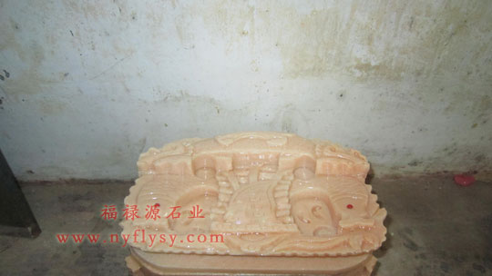 产品介绍:此款产品为晚霞红景观石材质制作而成,在物品前部,加入了雕刻工艺,使用双鱼戏珠的造型,寓意十分的好。