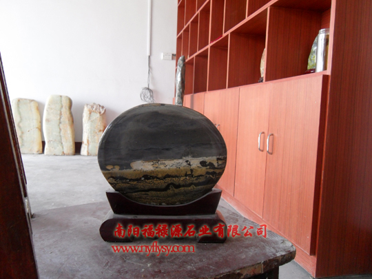 其形状为十分美丽的圆形,边缘十分的自然美观,表面宛如一幅山水画,其形流畅自然!