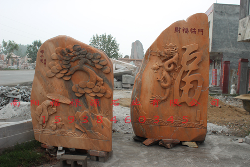 产品介绍:此款石材为晚霞红石材材质的,表面雕刻为福字,左侧石头为迎客松,其雕工人员是启用的专业的具有娴熟技艺的雕工师傅。
