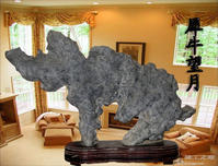 景观石 ,灵璧石中以黑色为最具特色的景观石。人们常常这样形容黑色的灵璧石“观之,其色如墨;击之,其声如磬”。其形或似仙山名岳,或似珍禽异兽,或似名媛诗仙。被国内外石艺界誉为"天下第一石"。